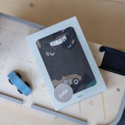 Dieser gemütliche Pyjama ist aus weichem Rippstoff gefertigt und hat elastische Bündchen. Das Set besteht aus einem Langarmshirt und einer langen Hose – perfekt für kuschelige Nächte und süße Träume. In dieser Saison ist der Pyjama in fünf Prints erhältlich: Bonnie Bouquet, Howdy Holly, Teddy Bear, Willy Walrus und Ricky Racer.